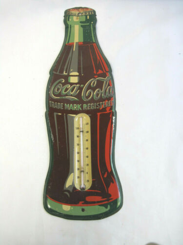 Title (ebay affiliate link): 1950s Vintage Coca Cola Die Cut Metal Bottle Thermometer 17" Long