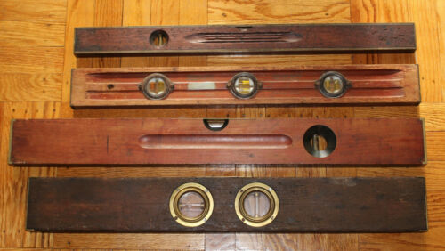 Title (ebay affiliate link): 4 Antique Stanely, Cooks Wood Wookworking Craftsman Brass Level