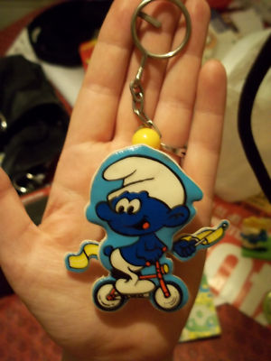 RARE VINTAGE PULL STRING SMURF KEY CHAIN WORKS!!