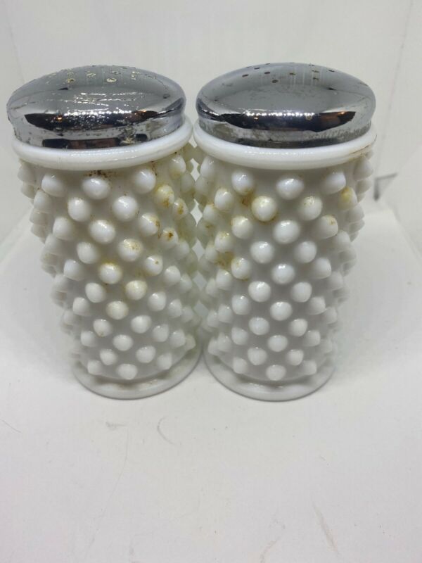 Lot Of 2 Fenton Hobnail Milk Glass 4 1/4" Shakers