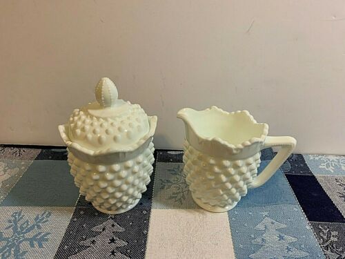 Title (ebay affiliate link): Vintage Fenton Milk Glass Hobnail Creamer and Sugar Bowl Set with Lid