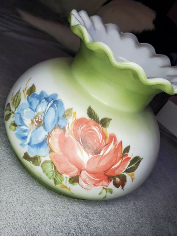 Vintage Hand Painted Floral Milk Glass Hurricane Lamp Shade - Gone With the Wind
