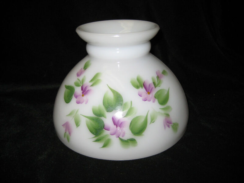 Title (ebay affiliate link): VIINTAGE LARGE GLASS LAMP SHADE-WHITE MILK GLASS WITH PINK FLOWERS&GREEN LEAVES