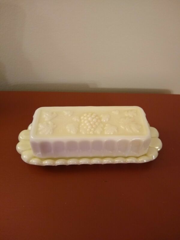 Title (ebay affiliate link): Vintage Westmoreland Milk Glass Butter Dish w/Lid Paneled Grapes Leaves