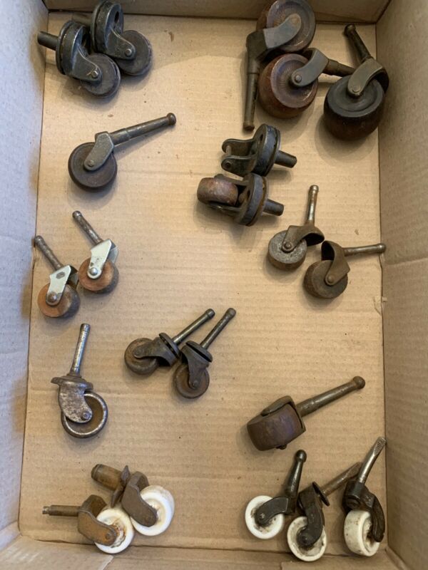 Title (ebay affiliate link): Lot of 21 Antique Furniture Casters/Castors/Wheels: Wood, Porcelain, Metal