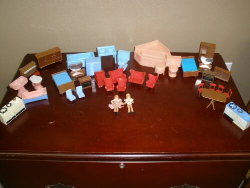 Title (ebay affiliate link): 38 PCS. VINTAGE "BLUE BOX" PLASTIC MINIATURE TOY FURNITURE FOR DOLL HOUSES