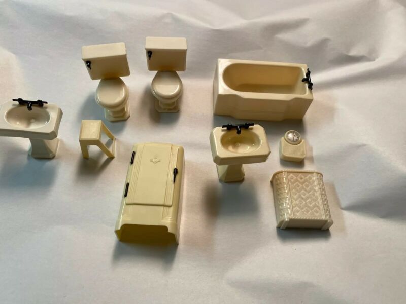 Vtg Renwal BATHROOM Furniture Dollhouse Furniture Renwal Miniature 9 Pieces