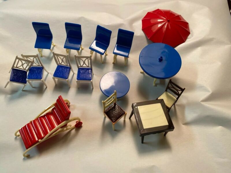 Vtg Ideal & Plasco Patio Furniture Dollhouse Furniture Miniature 14 Pieces