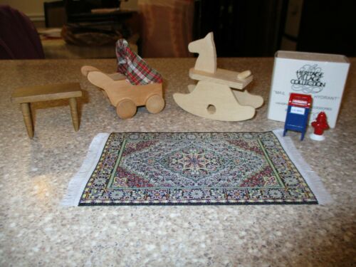 Title (ebay affiliate link): Lot of 6 Pieces Vintage Wood Doll House Furniture Baby Stroller & Rocking Horse