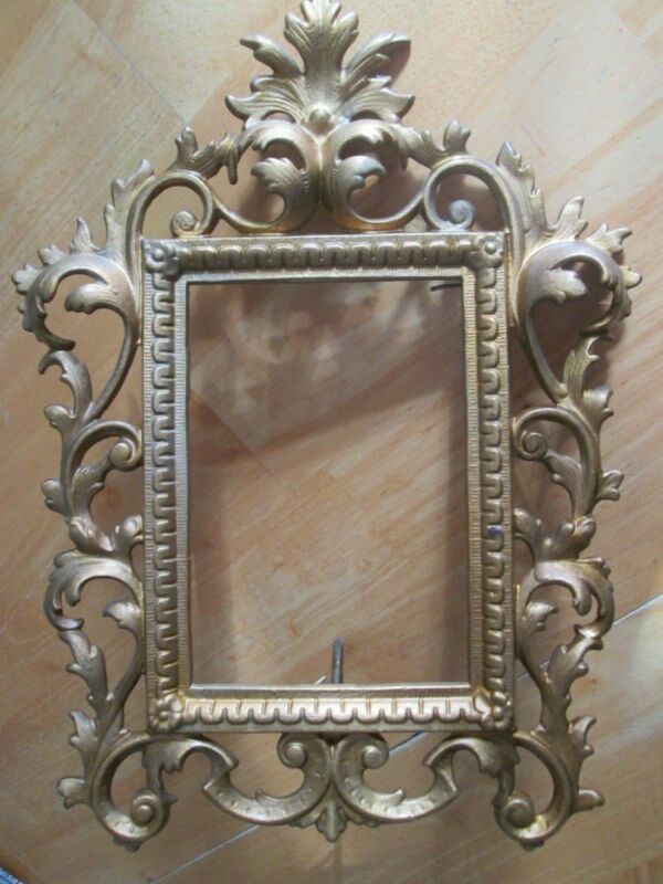 Antique Victorian Leaf Scroll Metal Easel Picture Frame 5x7 Heavy, Gold Tone
