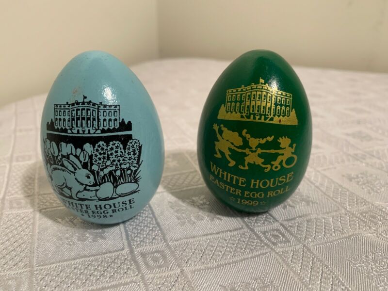 Title (ebay affiliate link): 1998-1999 Baby Blue/ Dark Green, (2) White House Easter Egg Roll Bill Clinton