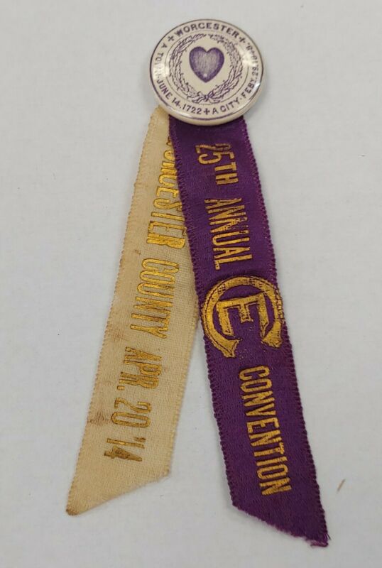 Title (ebay affiliate link): Antique PIN-RIBBON-BUTTON AWARD - 25th WORCESTER CHRISTIAN CONVENTION 1914