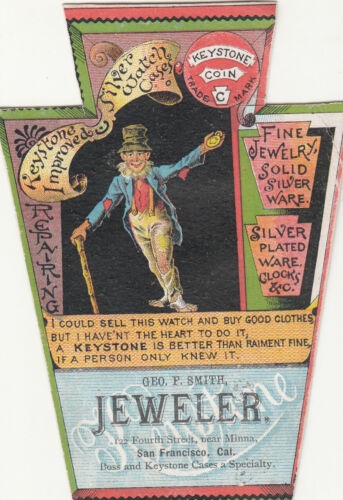 Title (ebay affiliate link): George F Smith Jeweler San Francisco CA Keystone Watch Case Vict Card c1880s