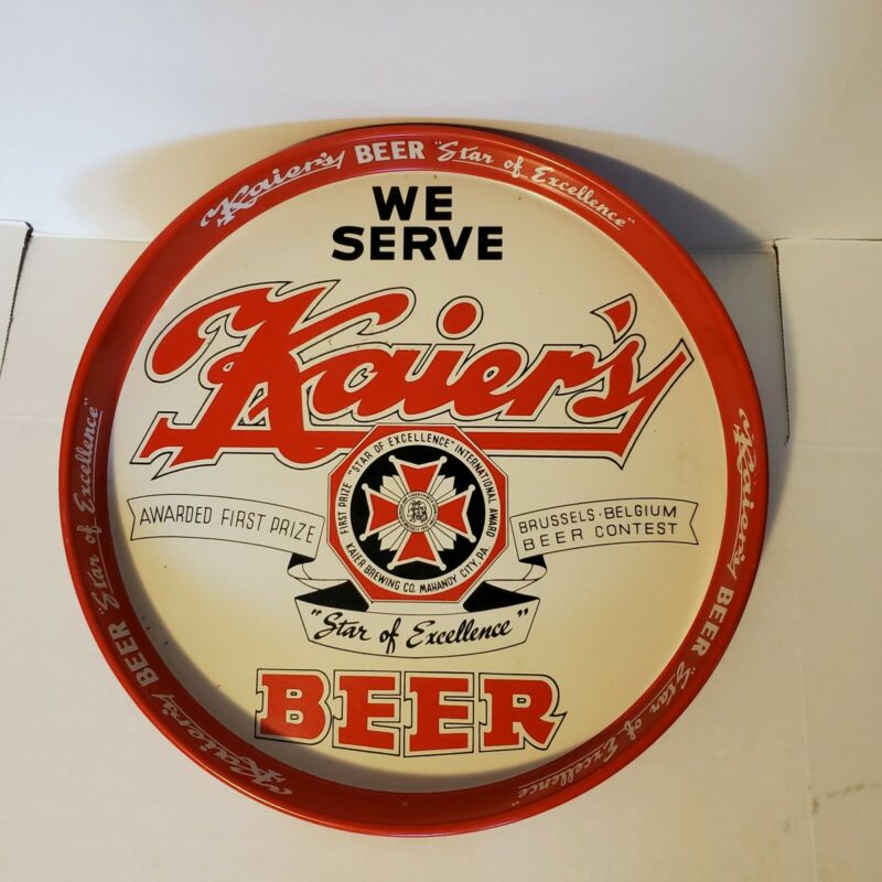 Title (ebay affiliate link): Vintage Kaier''s Beer Bar Tavern Metal Serving Tray Gas Oil Sign