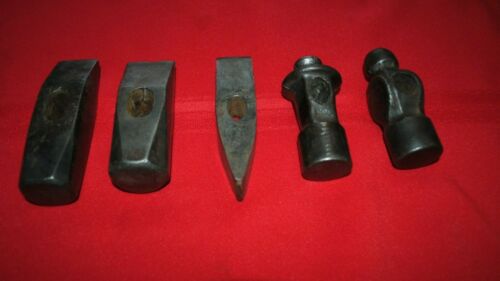 Five Vintage Blacksmith Hammer Heads, Plumb, Old Tools