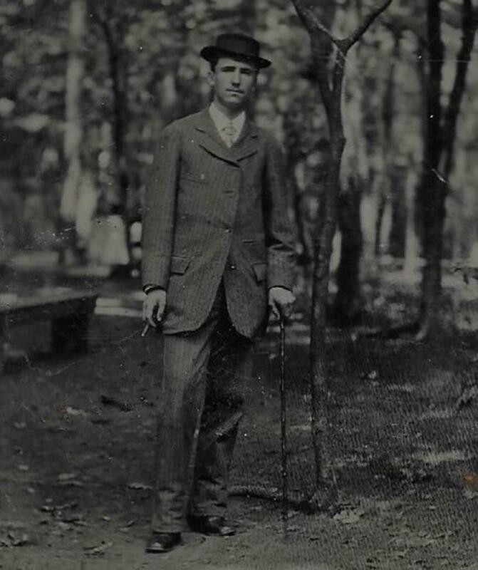 Title (ebay affiliate link): TINTYPE PHOTO #T935 MAN IN BRIMMED HAT POSING OUTSIDE W/ CIGAR & WALKING STICK