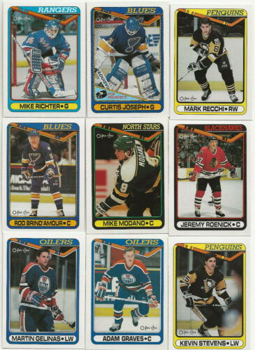 Title (ebay affiliate link): 1990-91 Lot of 9 O-Pee-Chee Rookie Hockey cards. OPC