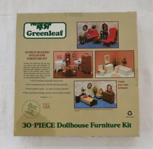 Title (ebay affiliate link): Vintage 1987 Greenleaf 30 Piece Wood Dollhouse Furniture Kit Unused but Opened