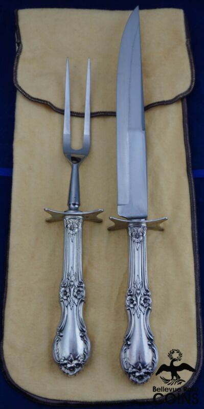 Lot of 2: Sterling Silver (.925) Handle & Steel Carving Fork & Knife w/ Pouch