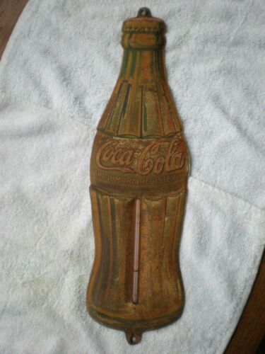 Vintage Coca-Cola Christmas Coke Tin Advertising Thermometer - Bottle Dated 1923
