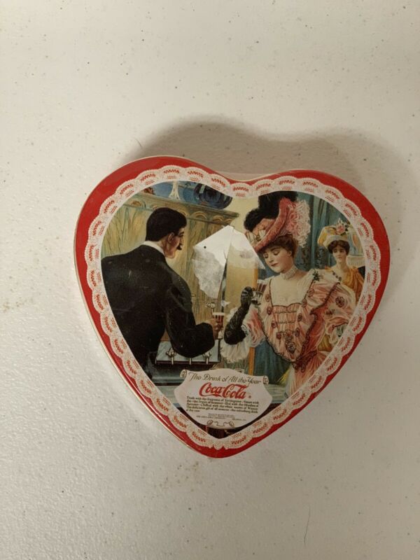 Title (ebay affiliate link): VINTAGE HEART SHAPED COCA COLA TIN - "THE DRINK OF ALL THE YEAR" WRITTEN ON LID