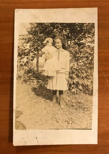 Title (ebay affiliate link): Vintage Real Photo Postcard, Girl with Doll, Women''s Fashions, 1c Stamp, 1916