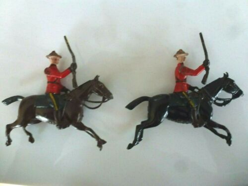 Title (ebay affiliate link): 2 VINTAGE LEAD TOYS BY BRITAINS LTD. CANADIAN MOUNTIES ON HORSE BACK, MOVING ARM