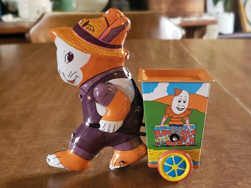 Title (ebay affiliate link): Tin Litho Easter Bunny Rabbit Pulling Hympty Dumpty Cart J. Chein Reproduction