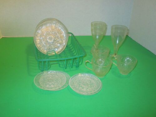 VINTAGE GROUP OF GIRL''S CLEAR PLASTIC PLAY DISHES WITH DRAINER