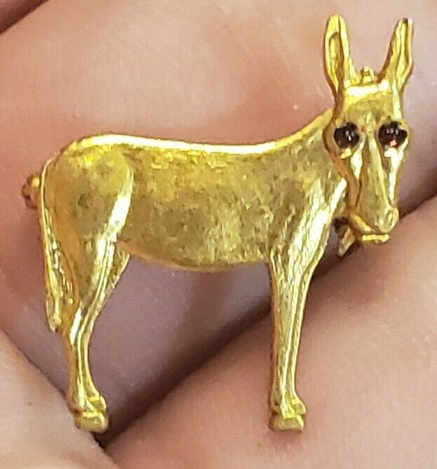 Title (ebay affiliate link): RARE VINTAGE GOLD TONE CABACHON EYES FDR ERA DONKEY POLITICAL DEMOCRAT PIN BADGE