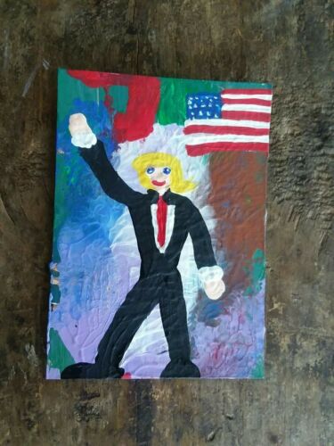 painting PRESIDENT TRUMP 2020 art TRADING CARD ACEO signed original cartoon new
