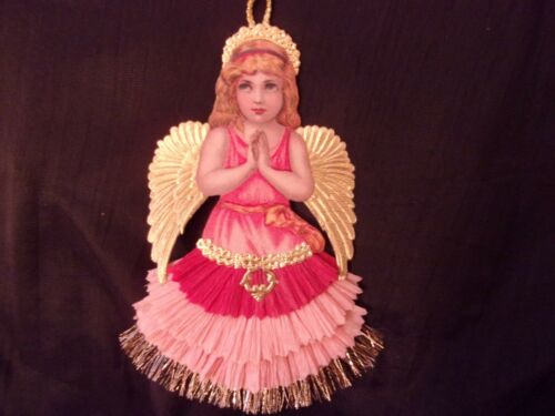 Title (ebay affiliate link): Antique Look EASTER Christmas Ornament, ANGEL SCRAP, Red Skirt, Handmade