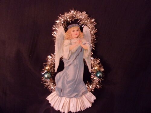 Title (ebay affiliate link): Antique Look EASTER Christmas Ornament, Blue ANGEL SCRAP, Glass, Handmade