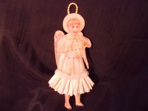 Antique Look EASTER Christmas Ornament, ANGEL W / Horn SCRAP, Skirt, Handmade
