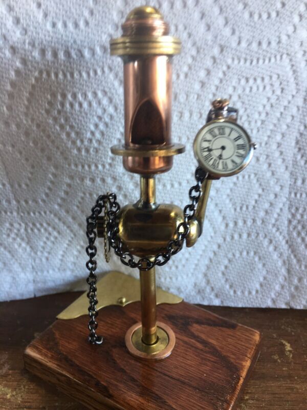 Title (ebay affiliate link): Working Miniature Steam Whistle. Brass,copper,oak Base. Wear As Steampunk Art.