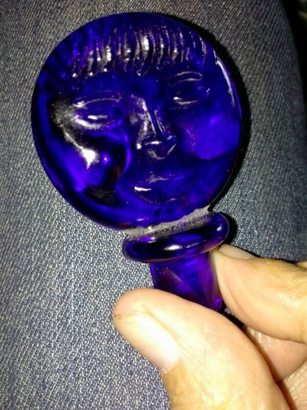 Title (ebay affiliate link): Antique Cobalt Dark Blue Glass Tab Top Decanter Bottle Stopper 2 & 1/2" Tall