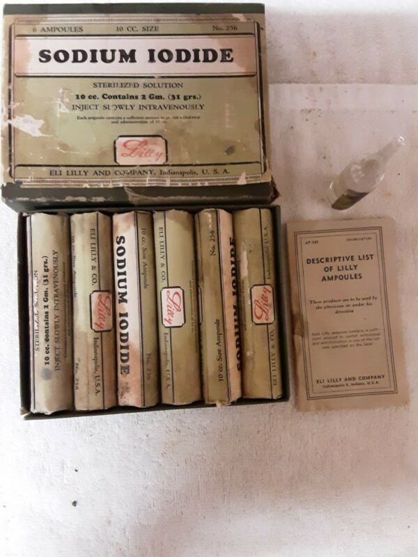 Title (ebay affiliate link): 6 Antique Eli Lilly & Co Sodium Iodide Apothecary Ampoules in Original Box