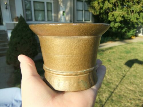 Title (ebay affiliate link): Antq Hand Hammered Brass Mortar 3.34 lbs w/ No Handles Pharmacy Laboratory
