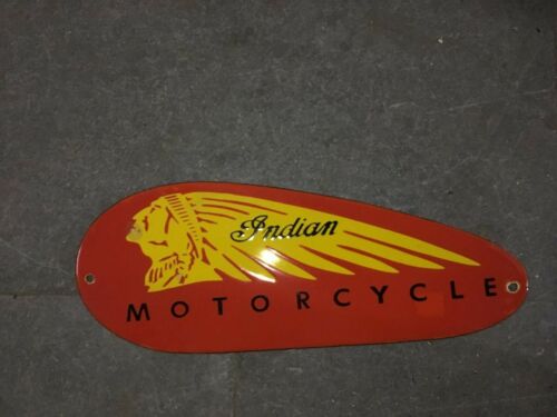 Porcelain Indian Motorcycle Enamel Sign Size 15.5" x 6" Inches
