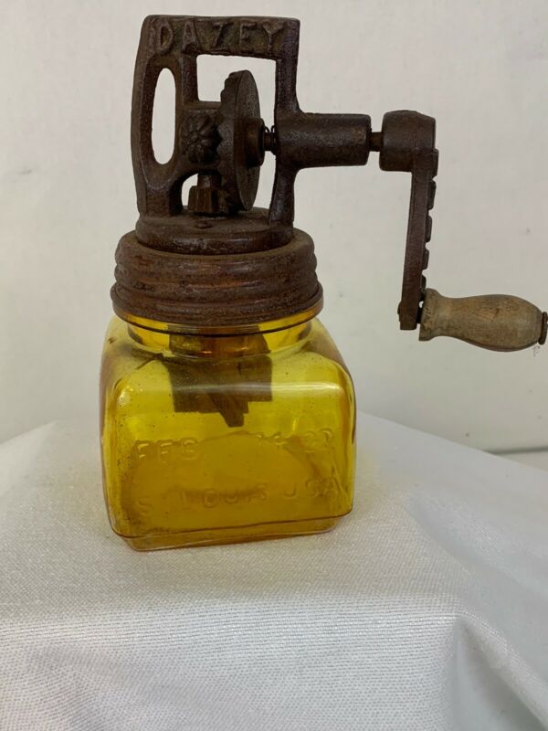 Title (ebay affiliate link): Dazey Glass Hand Crank Pint Size Antique Butter Churn Rustic Decor~Cute