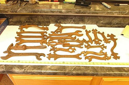 21 OLD RUSTY FARM MACHINE WRENCH TOOL BARN HANGERS