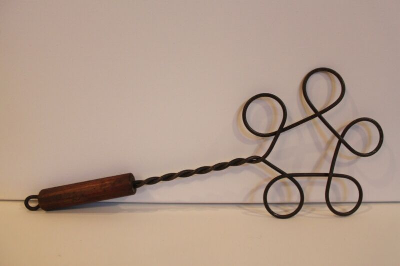 Title (ebay affiliate link): VINTAGE PRIMITIVE METAL WIRE RUG BEATER WITH WOOD HANDLE, 5 LOOPS