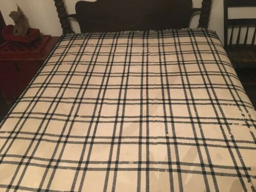 Title (ebay affiliate link): Antique Vintage Navy and Cream Wool Plaid Blanket - Nice Primitive!