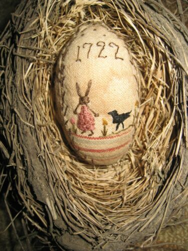Title (ebay affiliate link): Primitive tiny Sampler Pillow~1722 The 4 Rabbits & Chicken- Flowers~ Folk Art