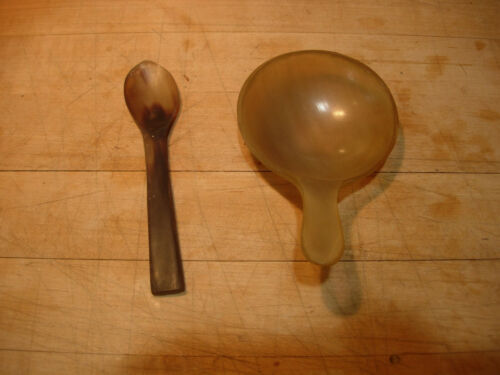 2 Antique Carved Cow Horn Spoon & Scoop