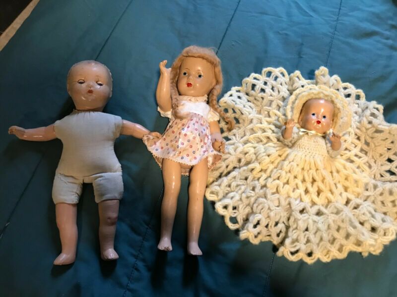 3 Antique dolls: 2-16", 1-9", c. 1940