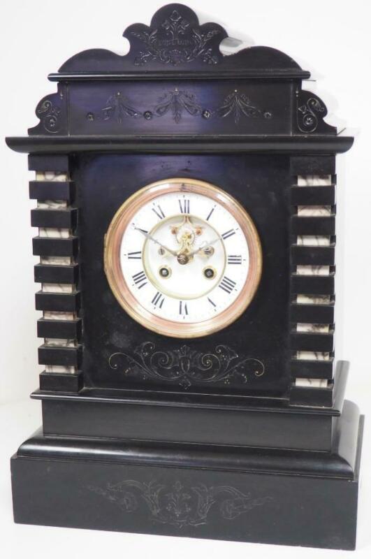 Incredible French 8 Day Mantel Clock Slate & Marble Cased Regulator Mantle Clock