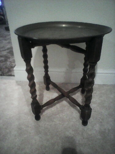 Title (ebay affiliate link): Vintage Oriental Brass Tray Top Folding side table with Barley Twist Legs.