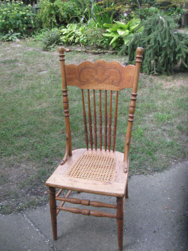 Title (ebay affiliate link): Victorian antique oak pressed back chair cane seat spindles