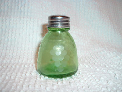 GREEN VTG DEPRESSION GLASS GRAPES SALT/PEPPER SHAKER